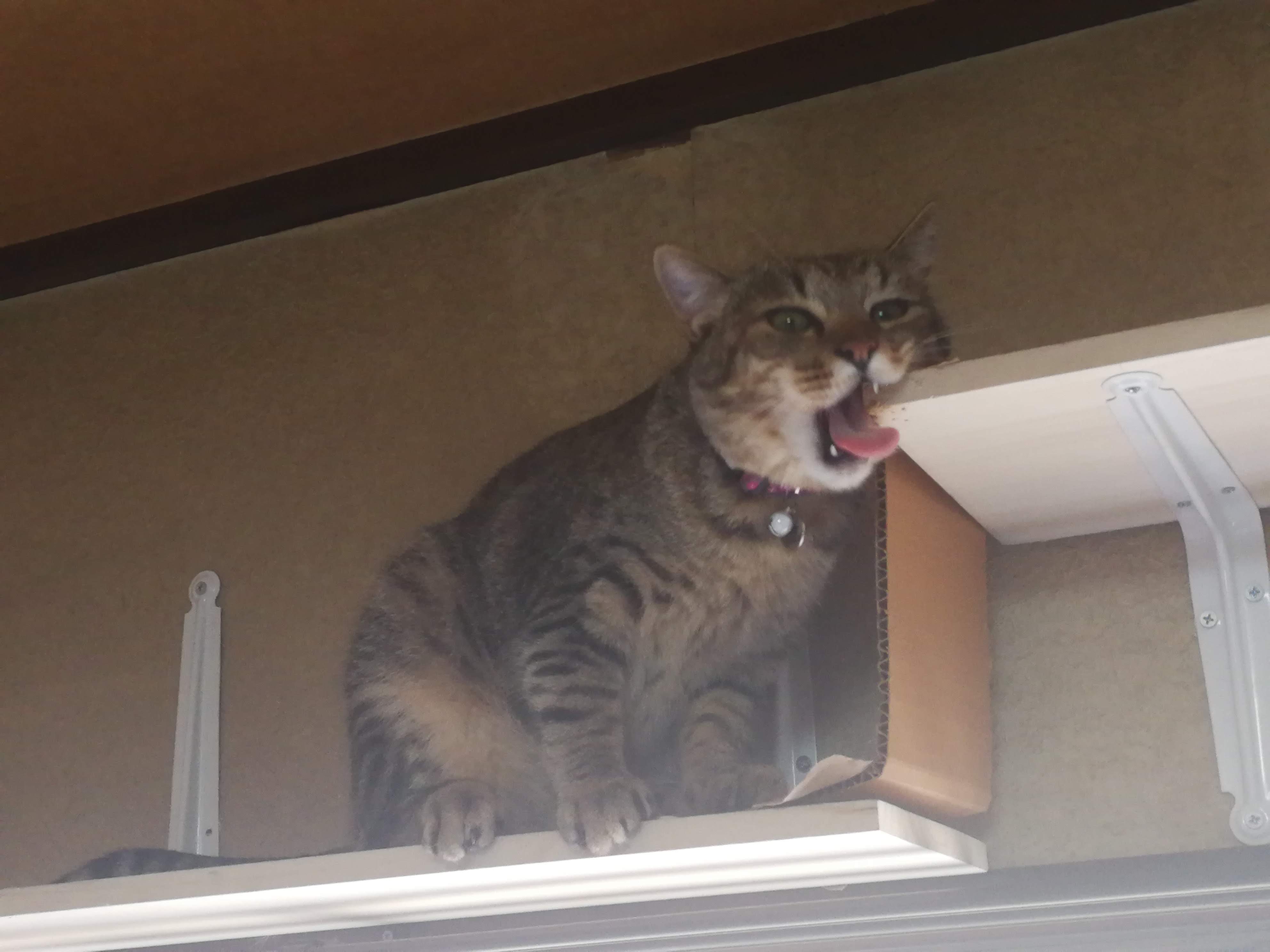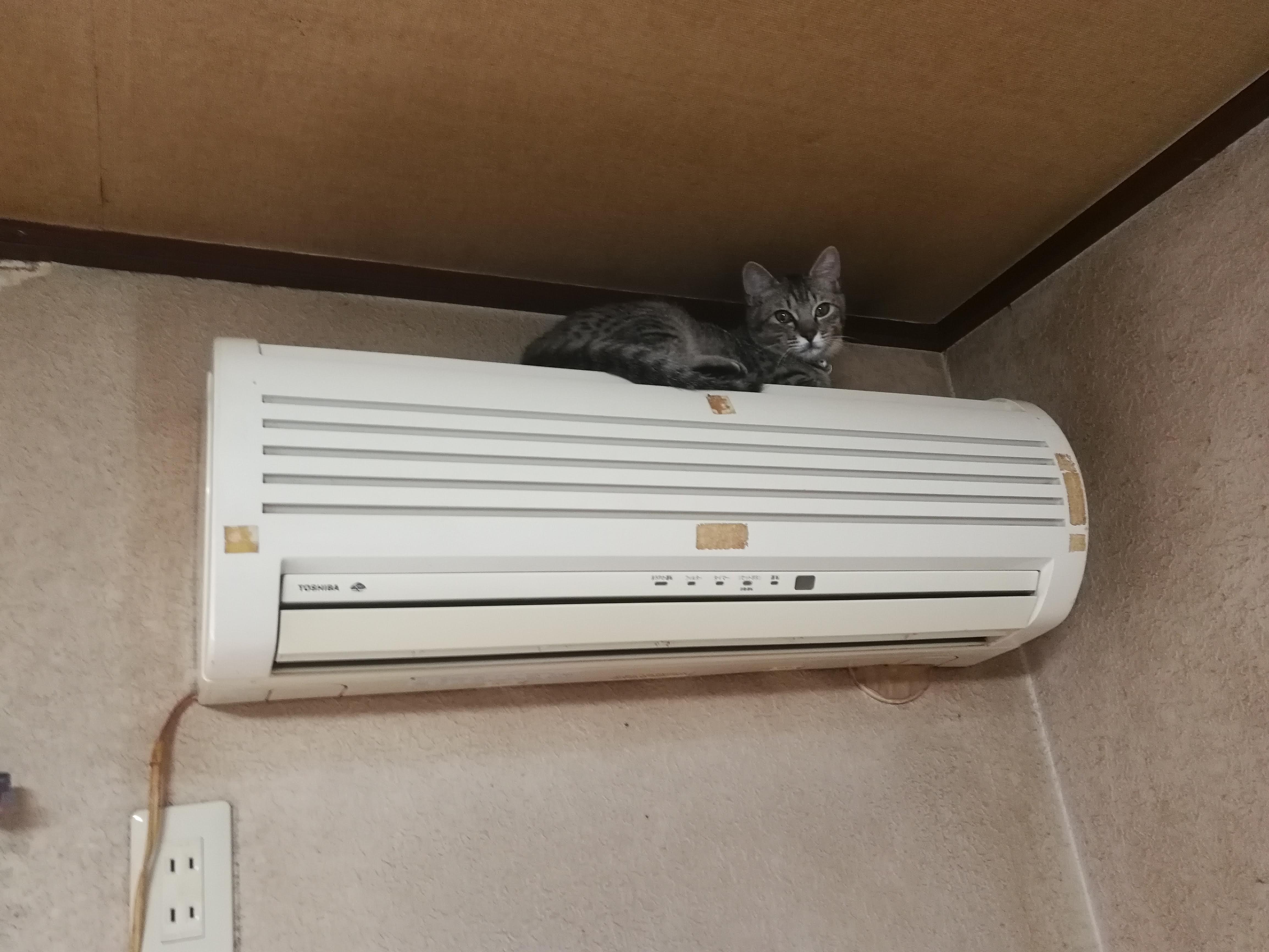 2月22日 エアコンからドヤ顔カーテンレールからエアコンへ、3月上旬 キャットウォークを付け、カーテンレールには登れなくなりました。