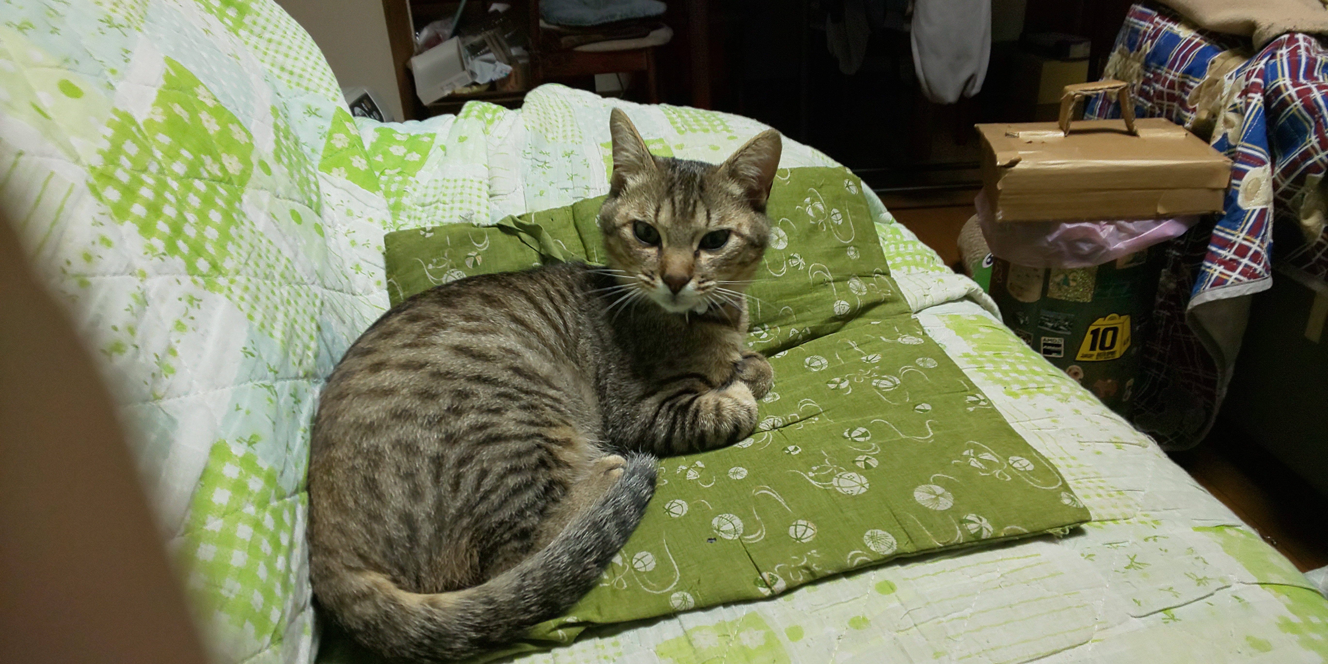家の環境にすぐに慣れ、よく食べる。ただ、1匹なので寂しいようで、時々みゃみゃ声を出しています。