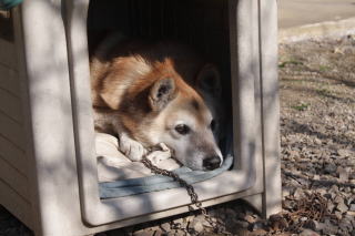 年齢 19才 雄 柴犬と?との雑種です。何も芸をしませんし、主人の命令を聞きませんが、知らない人には吠えるため、番犬として能力はあります。(まるはペットではありません!番犬です。) 最近は、面倒くさいのか吠えたり吠えなかったりです。また、寒い冬は犬小屋から出てきません。