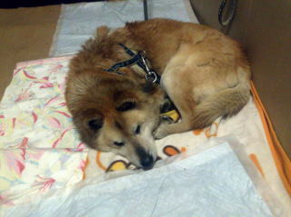 13/09月(19歳) 夜は、吠えるの(隣近所に迷惑)で玄関で寝るとに・・・・。まだ元気です。