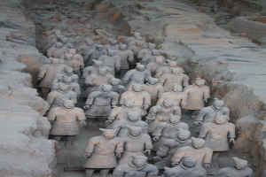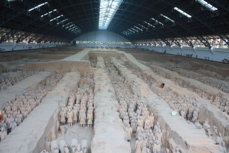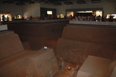 | 兵馬俑坑博物館3 一号抗 約6000体の武装した兵馬俑が38列にわたって並んでます。 |