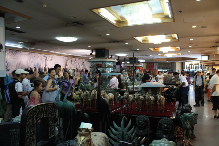 | 兵馬俑坑博物館7 博物館内にあるショップ。 ここで、兵馬俑のレプリカを100元で購入。定価200元 発見者の陽さんもいました。人気者でサインを求められていました。 |