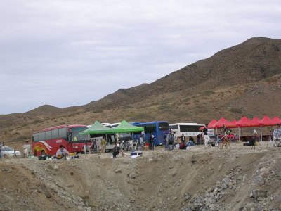 トイレは、地面に穴を掘った簡易的なものです。地面をブルドーザーで平らにしてありました。また、公安のパトカーもいます。