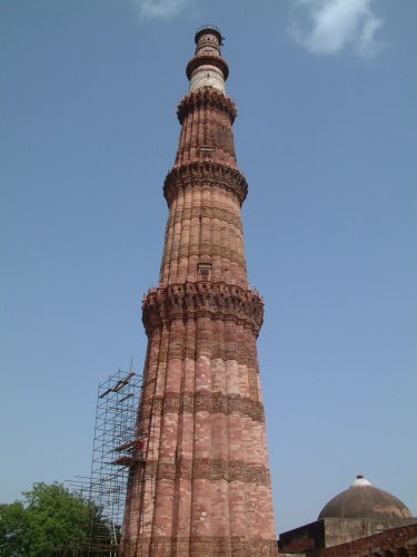 デリー クトゥブミナール 12世紀末に支配したイスラム教徒によるインド支配の開始を記念する建築物 |