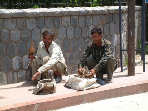 デリー 道端でコブラを操っている人。 インド的です。 |