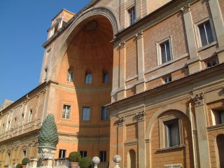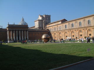 バチカン博物館 内庭 すぐ隣には、システィーナ礼拝堂(ミケランジェロ作「最後の審判」で有名)がある。 |