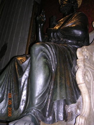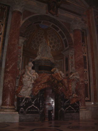 サンピエトロ寺院W 聖ペテロ像。信者が足に触れると、またここにこれるといい像。 足の色が剥がれています。 |