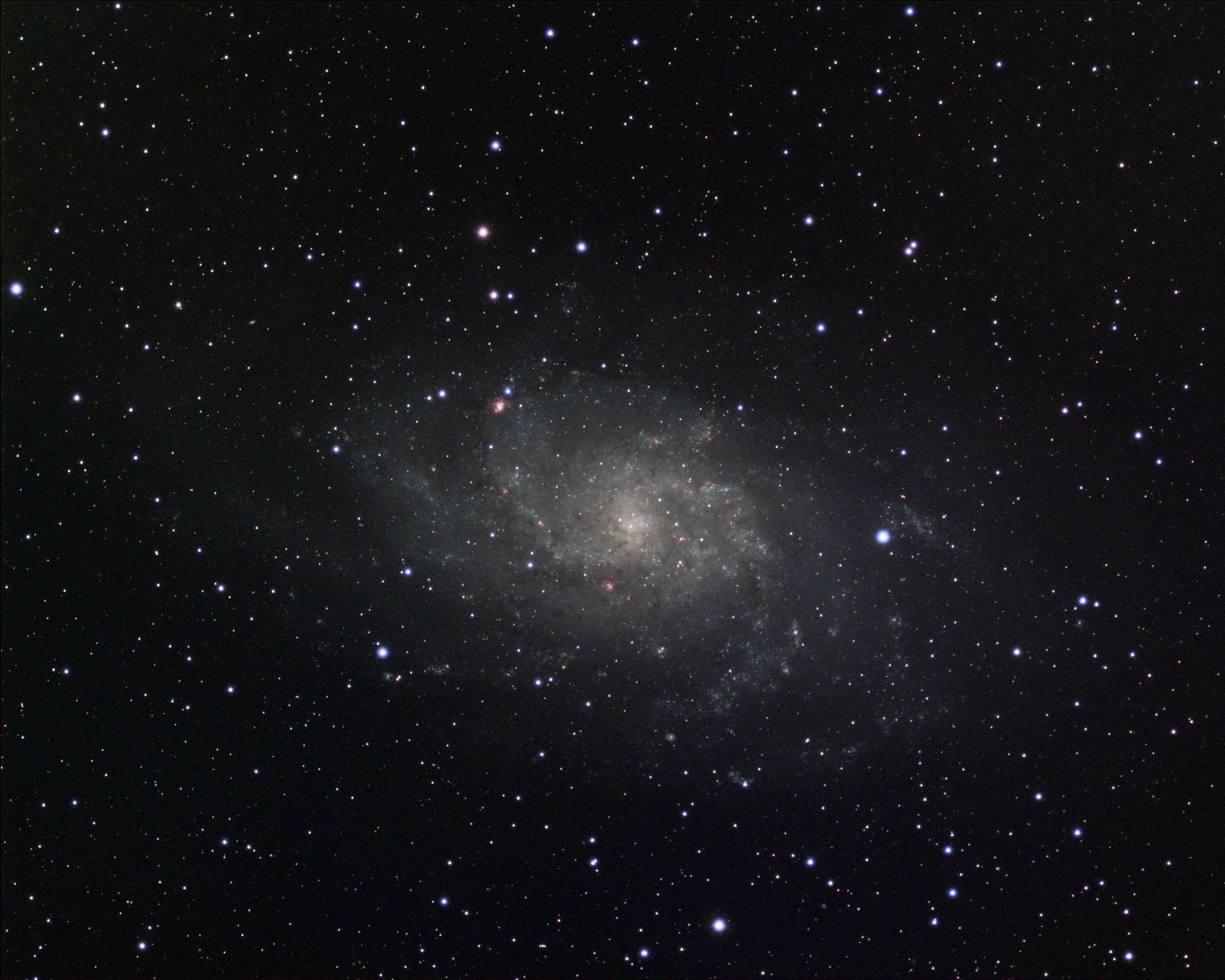 | M33 | 07/08/12 ADVIX115S R使用 光害防止フィルター -5℃ L10m×3 RGB 5m×2(2ピニング) 雲が時々発生し この程度のコマしか撮れない M33は明るい星雲とは思うが写りは悪い 薄明後、まるの散歩に行く。 |