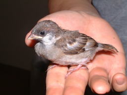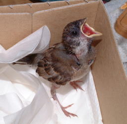 生後12日目 外見が、すずめらしくなってきました。 |