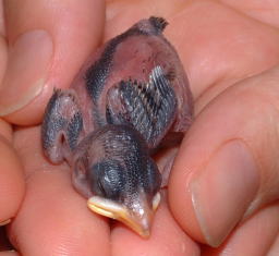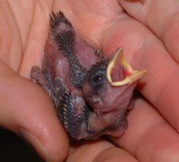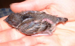 生後5日 まだ、目もあきませんが、羽根に毛が少し生えてきました。 |
