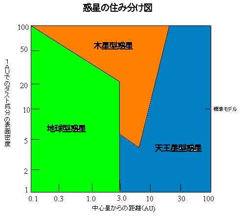 惑星の分布は、惑星の材料、ダスト成分の違いによります。
