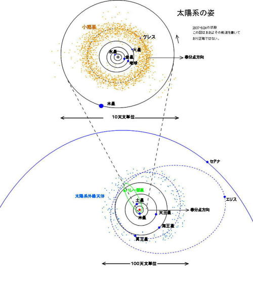 太陽系の惑星は小惑星帯を挟んで、水星、金星、地球、火星の地球型惑星グループ(内惑星:inferior planets)と、木星、土星、天王星、海王星のガス状惑星の木星型惑星(jovian planets)から成っています。