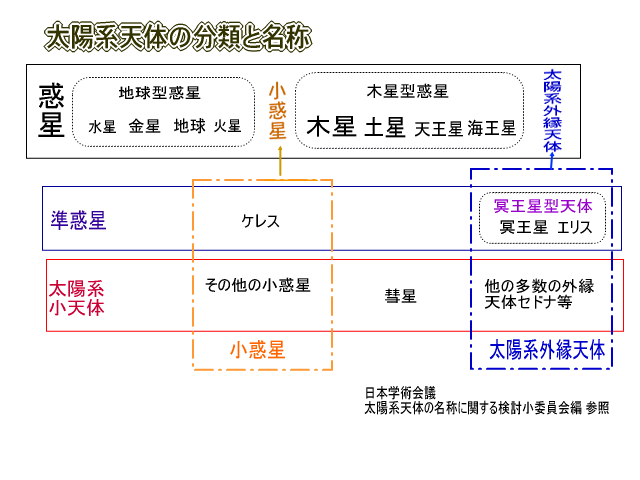 | plutoid(2008 決定) | 冥王星型天体 | 直径1000キロメートルを超える天体 冥王星、エリス、マケマケ、ハウメアが該当 |